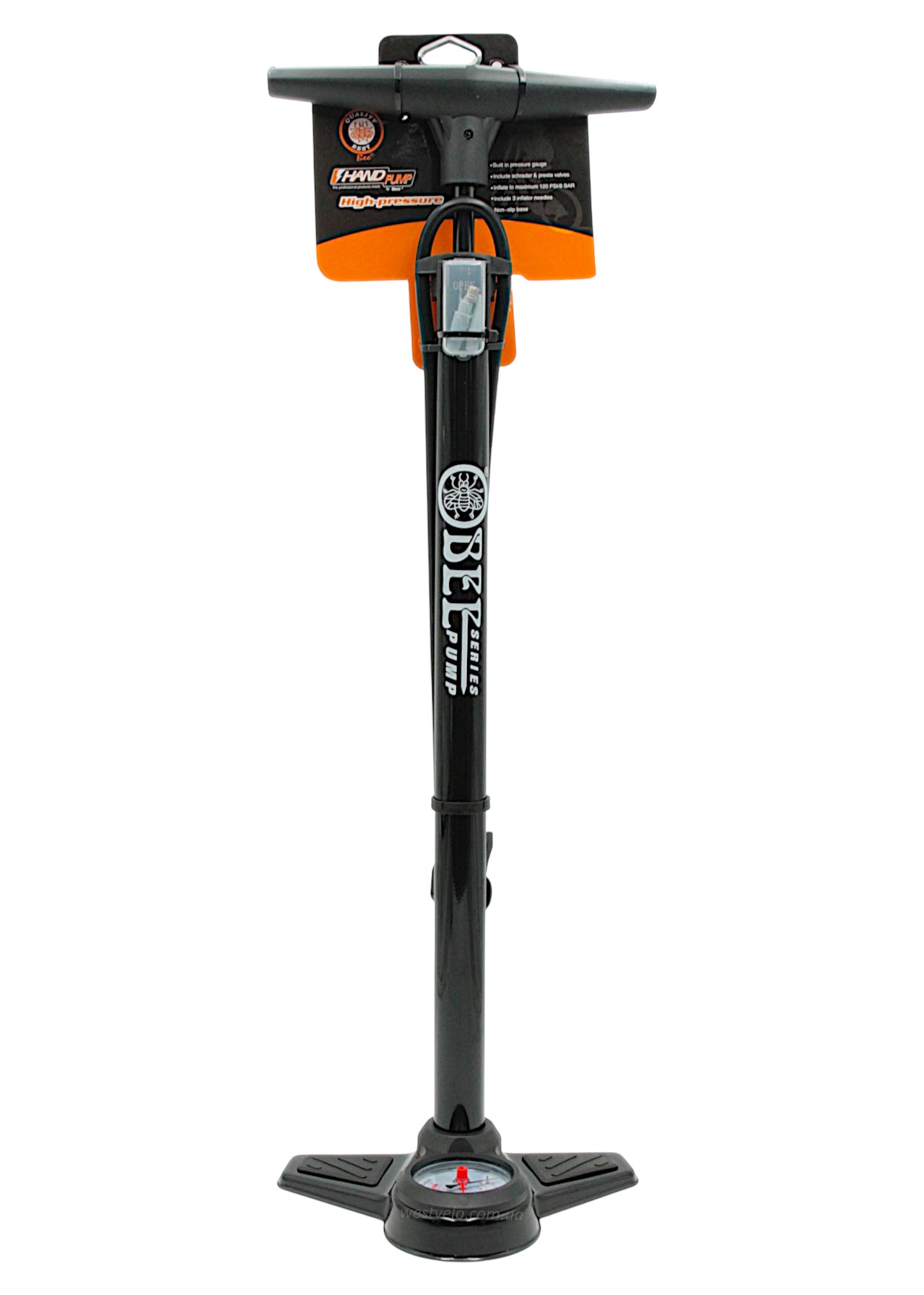 Насос авто з манометром BEE pump (ZF-042) сталевий чорний, 2-ний наконечник (AV/FV)