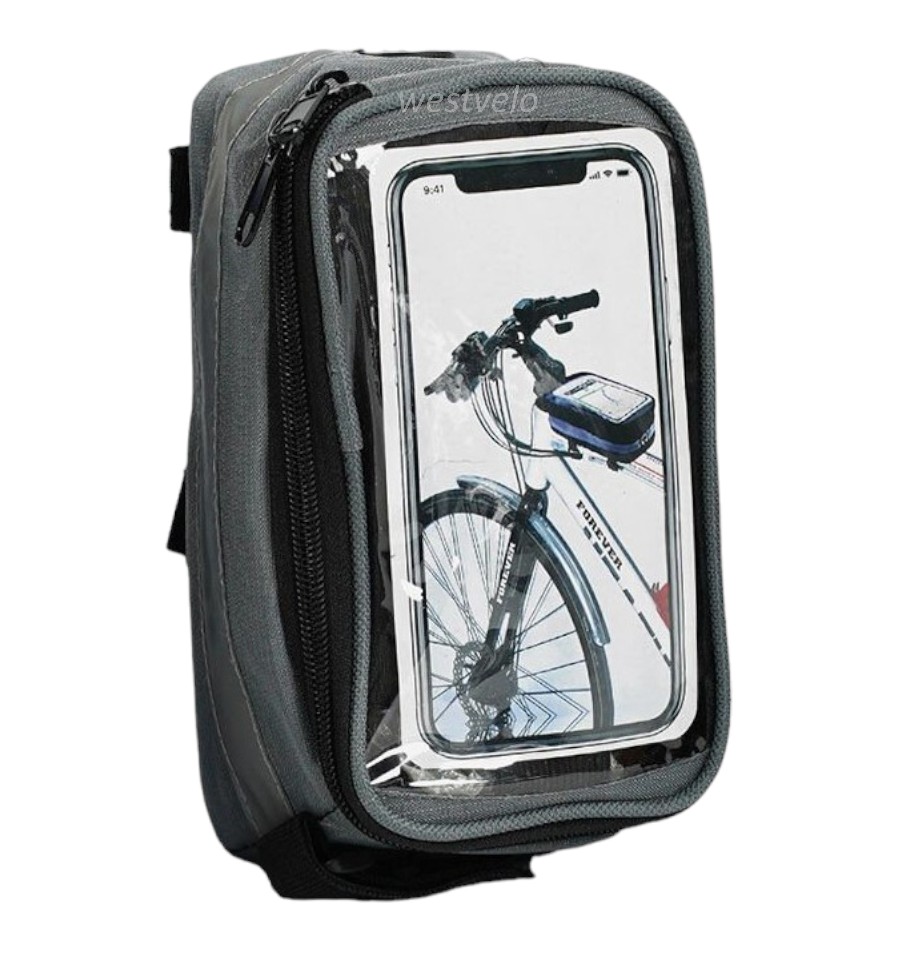 Сумка на раму + місце для телефону,сіра з світловідбиваючою вставкою