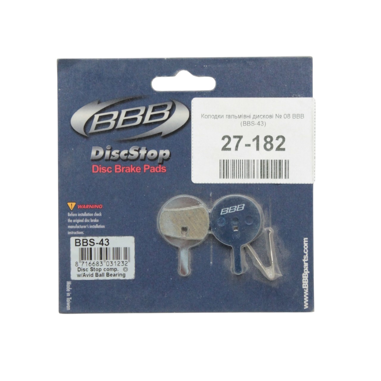 Колодки гальмівні дискові № 08 BBB (BBS-43) (Тайвань)