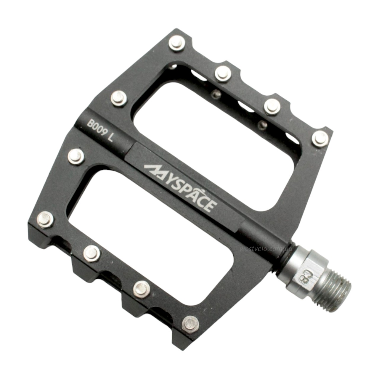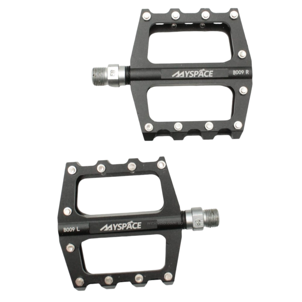 Педалі алюміній проми MYSPACE В009, чорні з змінними шипами