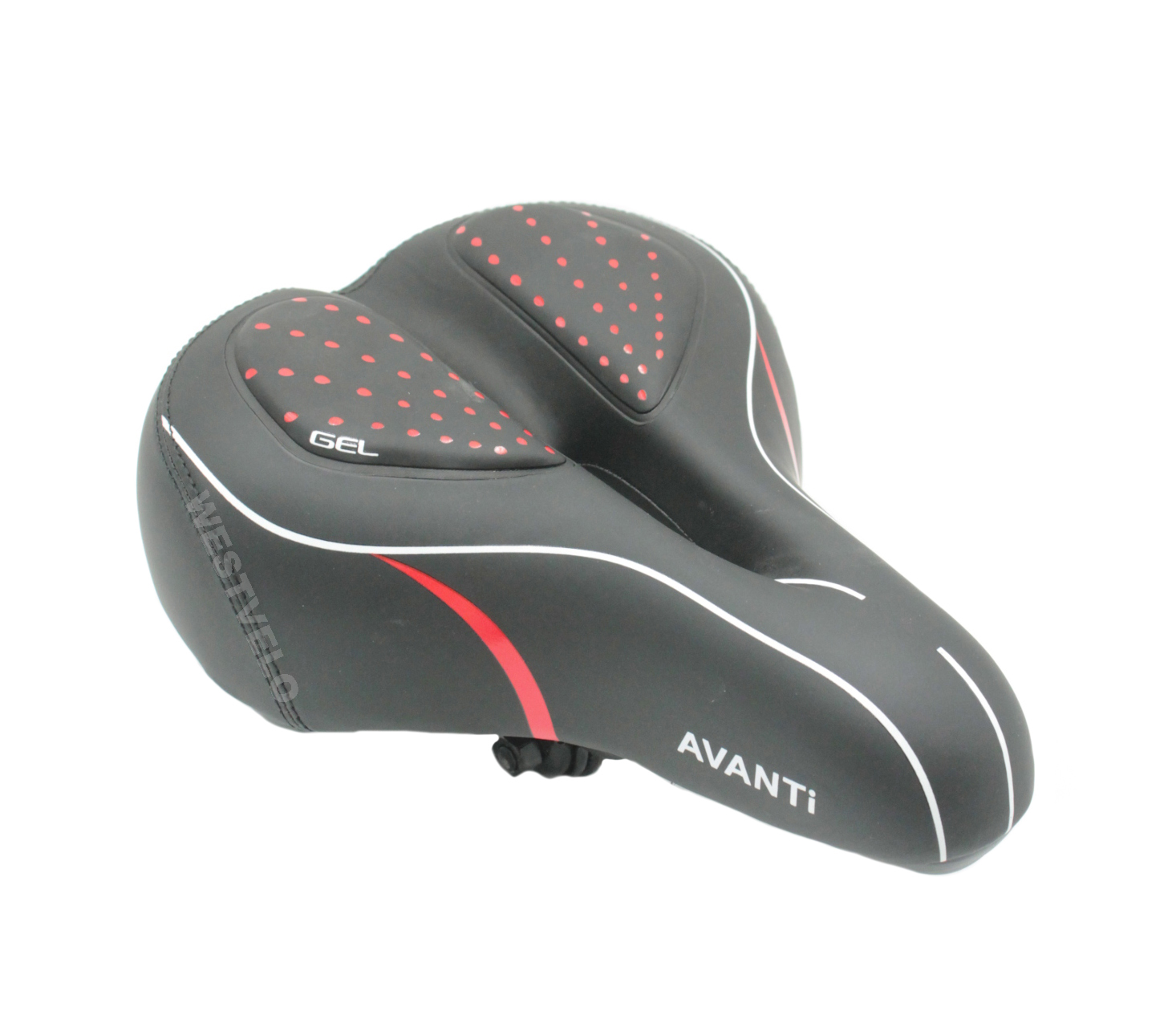 Сідло на пружинах з отвором AVANTI № 189 GEL, чорне з крапками (червоні)