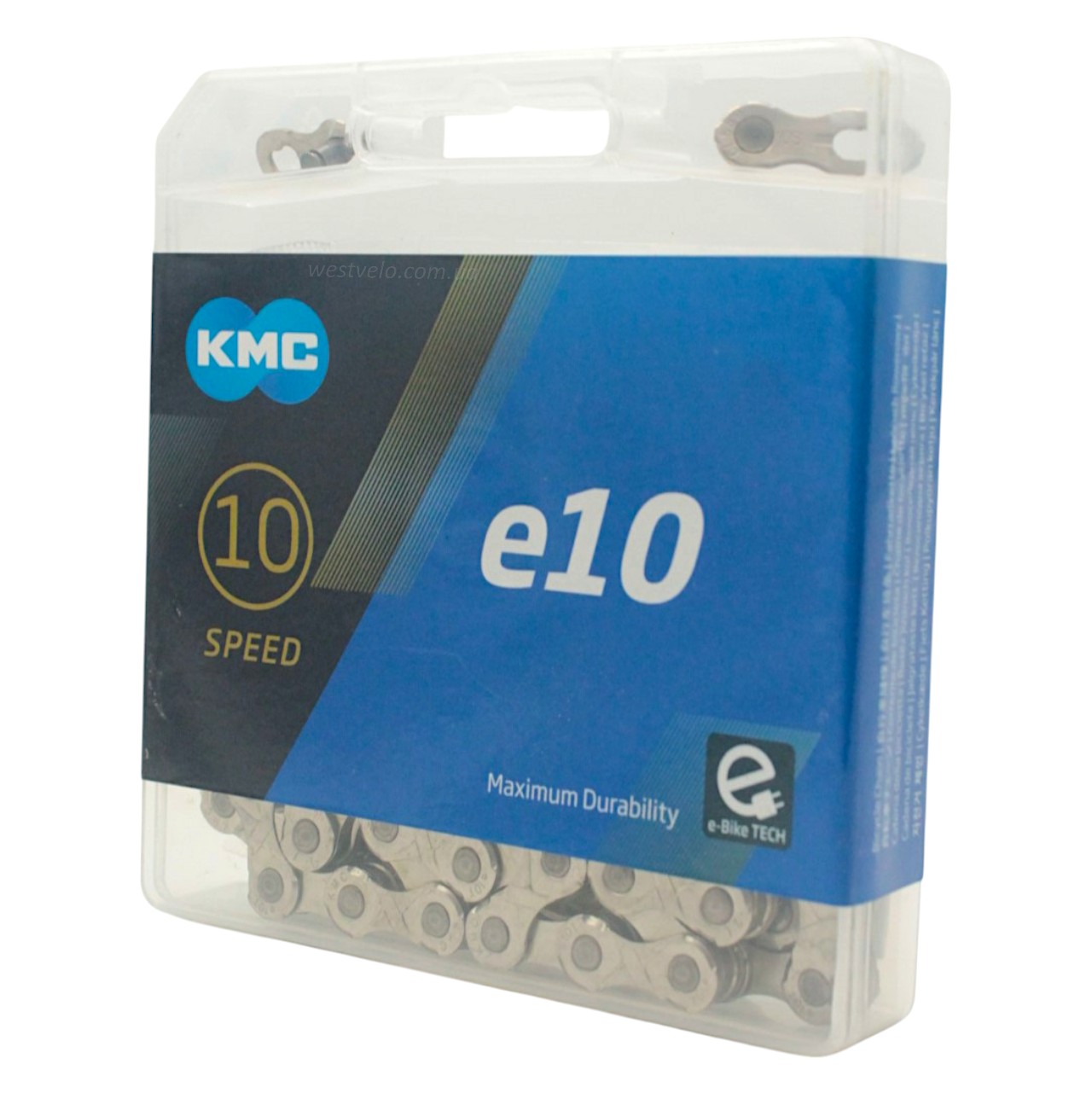 Ланцюг спорт 10 передач KMC е10-Т нікель-сірий, (1/2x11/128x122L) пластик + замок