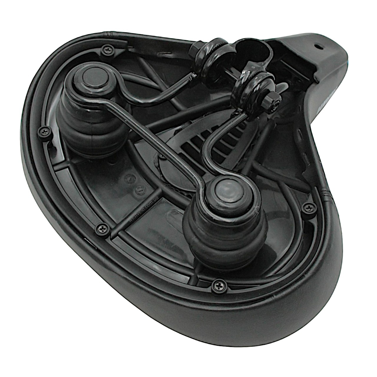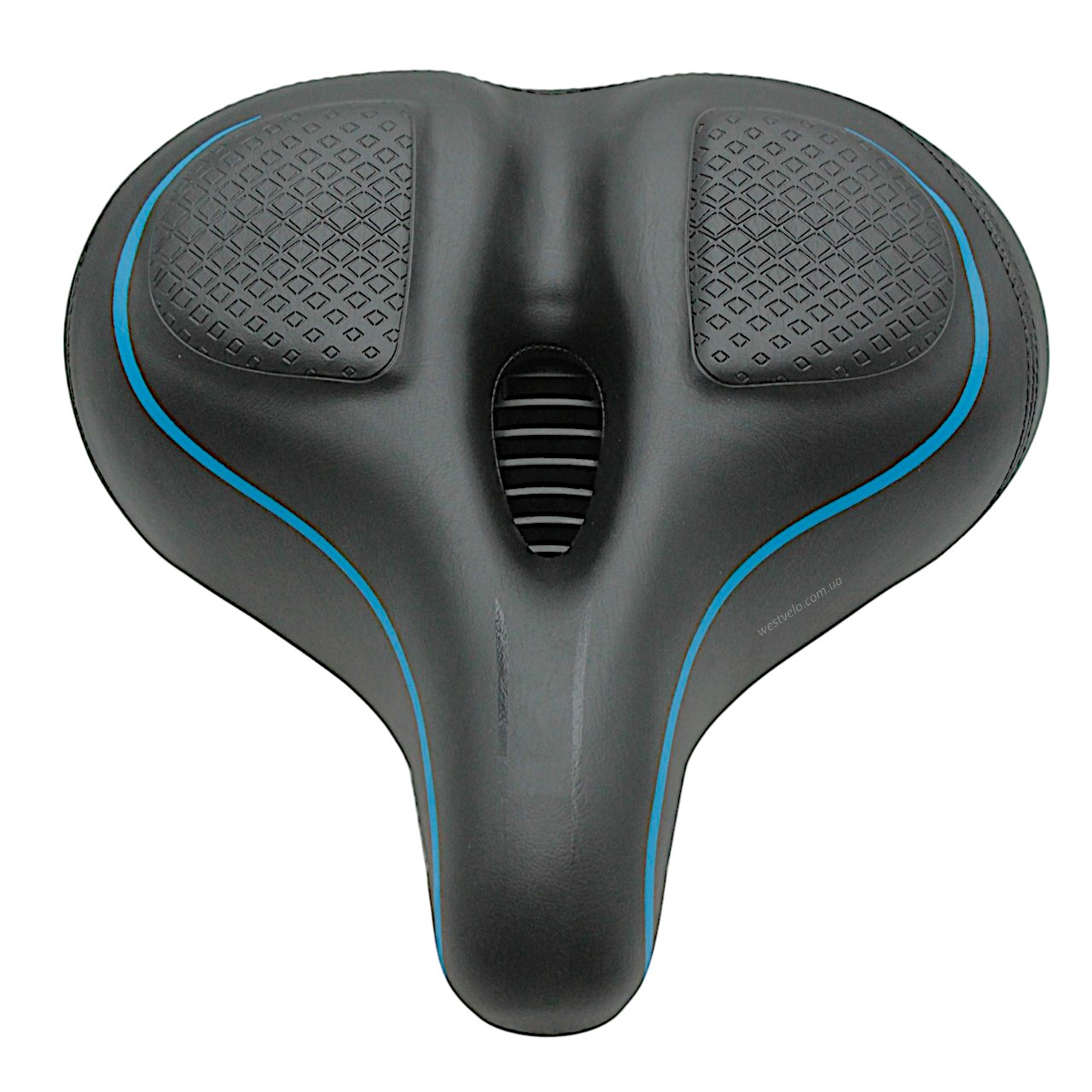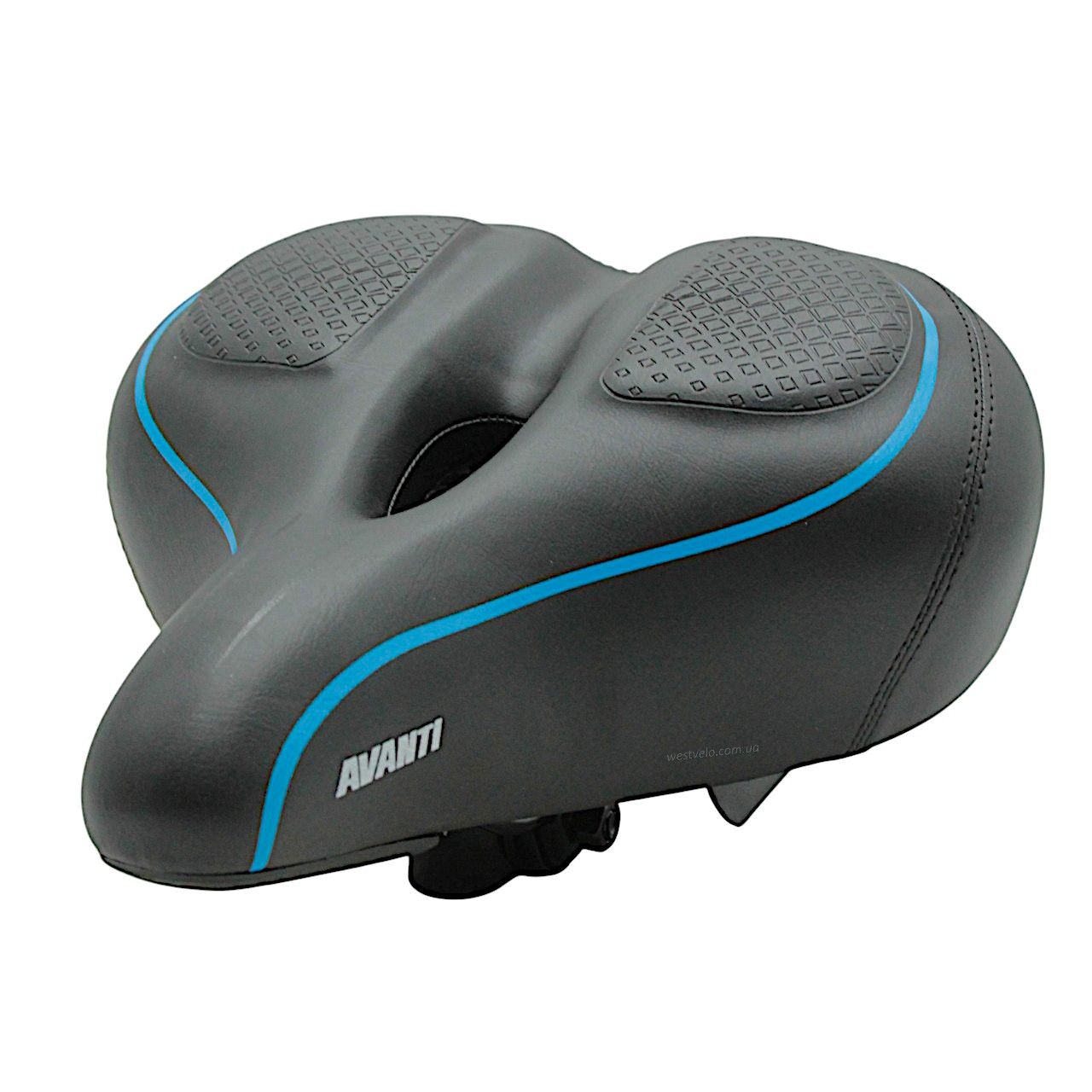 Сідло на демферах з отвором AVANTI AFT-89, чорне м'яке, синя полоска