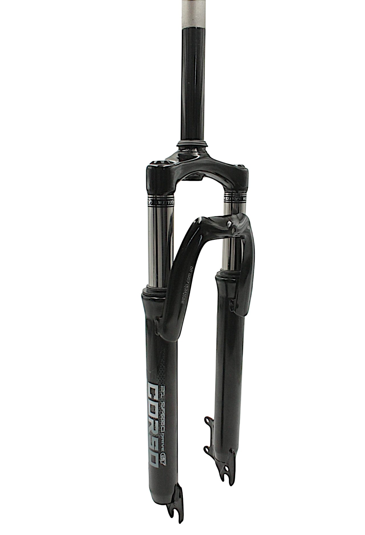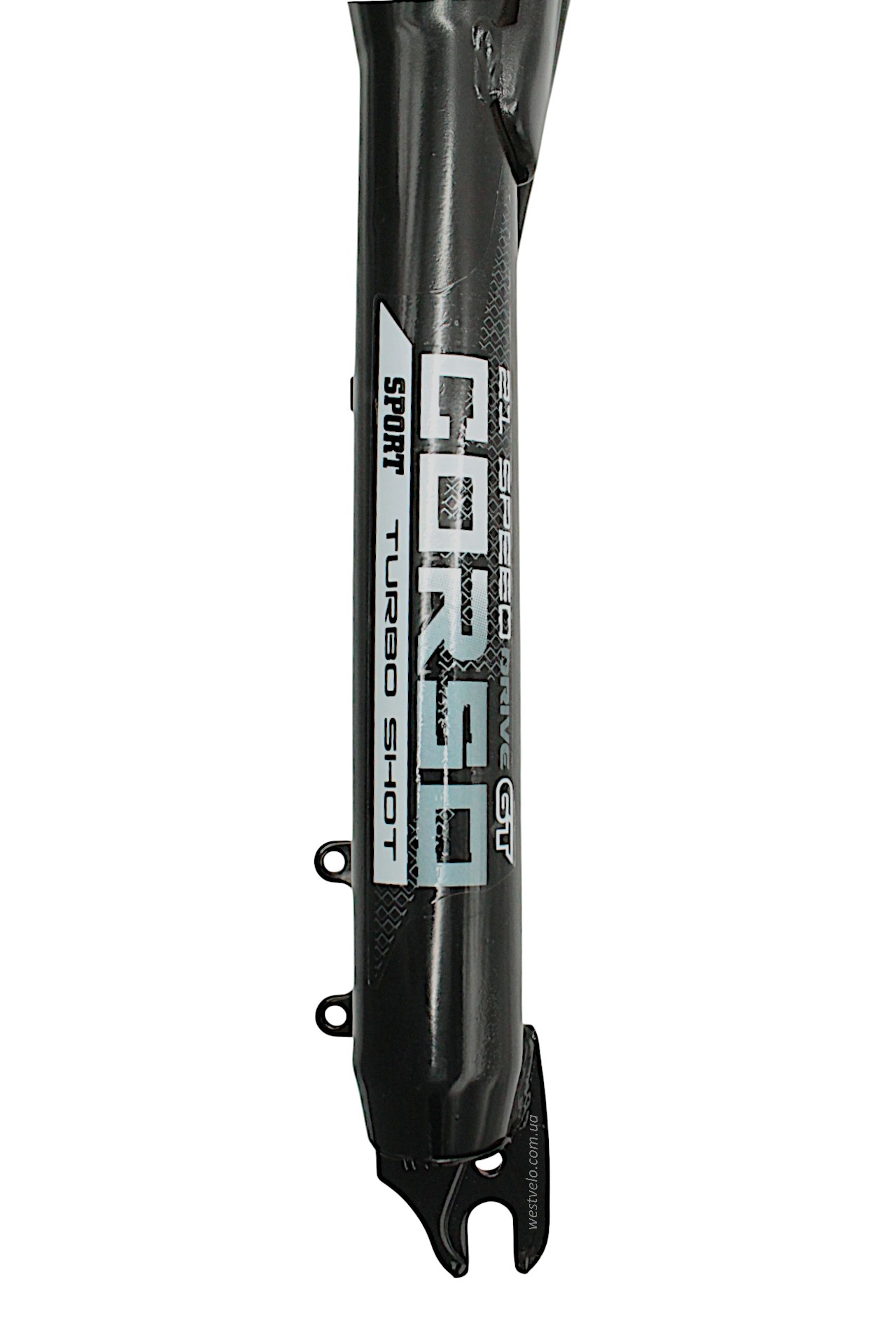 Вилка 26 аморт. безрізьб. CORSO (128) Ø28.6mm, disk. шток L-200mm чорно-сіра глянцева