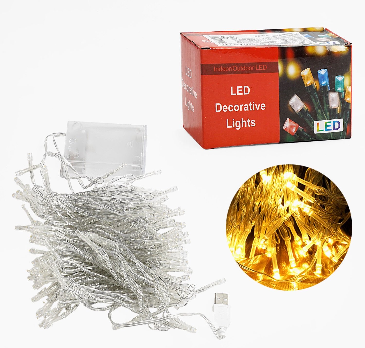 Гірлянда світлодіодна 10.3 м, жовте світло,від USB та батарейок, 1 режим, у коробці (C 61479-60 Y)