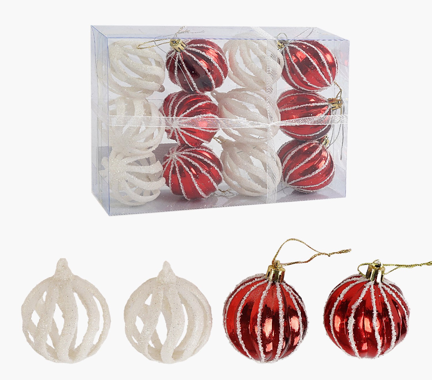 Новорічні прикраси 12 шт, кульки, D = 6 см, в слюді (C 67262)