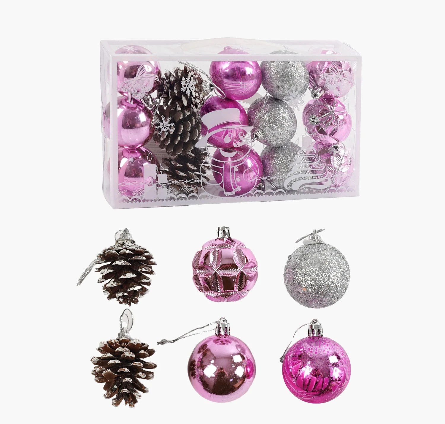 Новорічні прикраси 15 шт, кульки, шишки, D = 5 см, в слюді (C 67313)