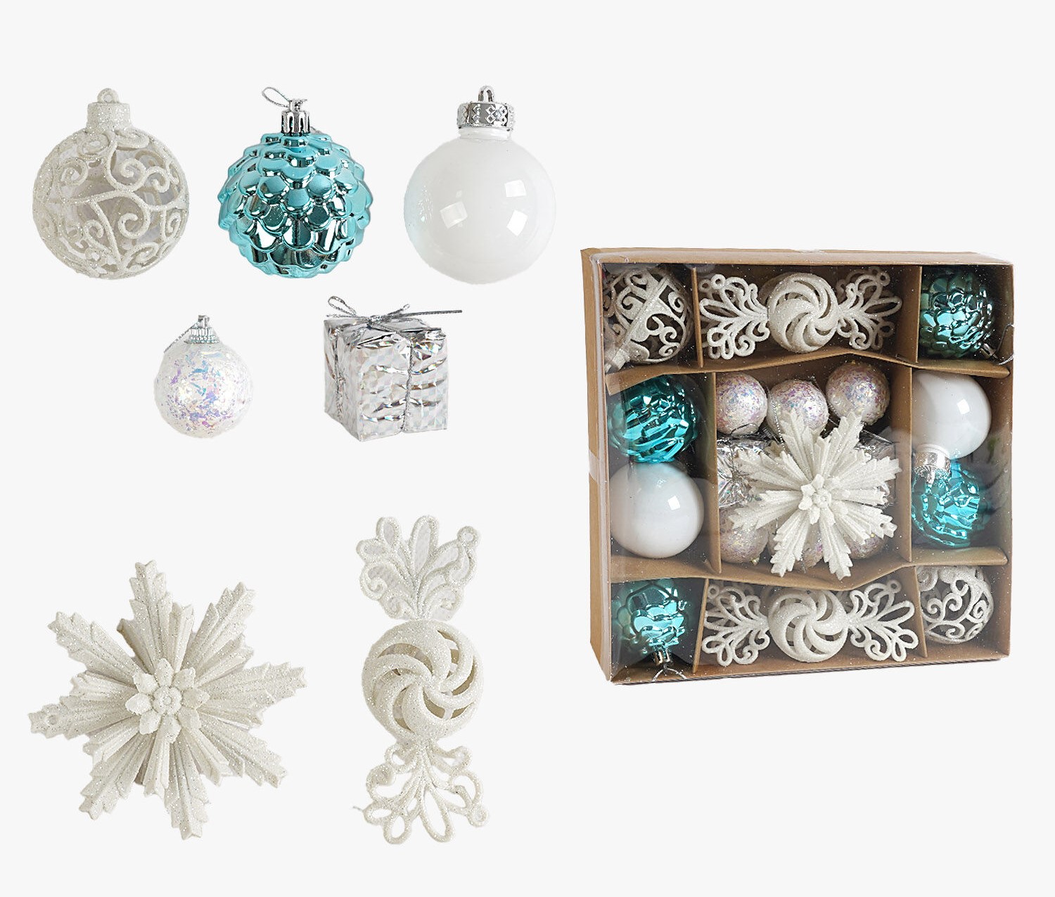 Новорічні прикраси 22 шт, кульки, квітка, візерункові цукерки, D = 5.5 і 3.5 см, (C 67451)