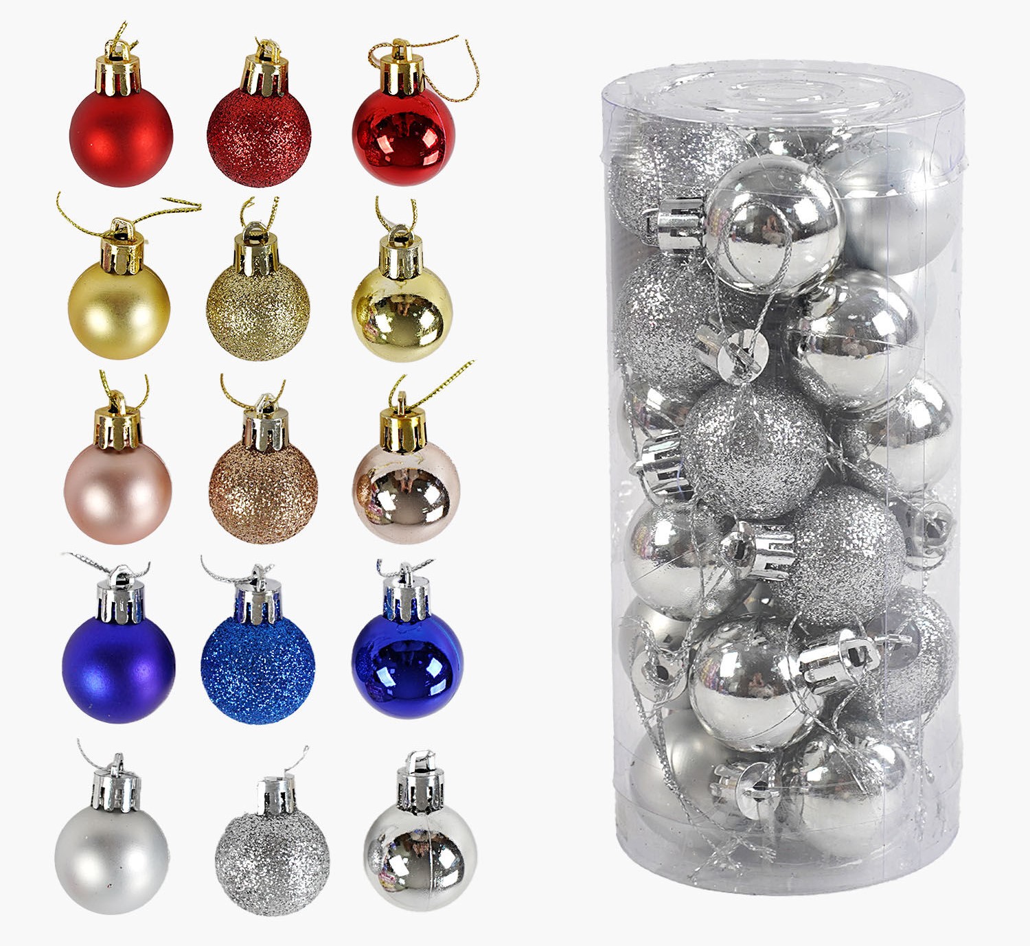 Новорічні прикраси 24 шт, 5 видів, кульки, D = 3 см, в слюді, ВИДАЄТЬСЯ ТІЛЬКИ МІКС ВИДІВ (C 67709)