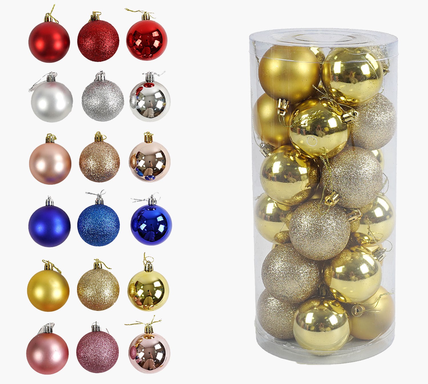 Новорічні прикраси 24 шт, 6 видів, кульки, D = 6 см, в слюді, ВИДАЄТЬСЯ ТІЛЬКИ МІКС ВИДІВ (C 67711)