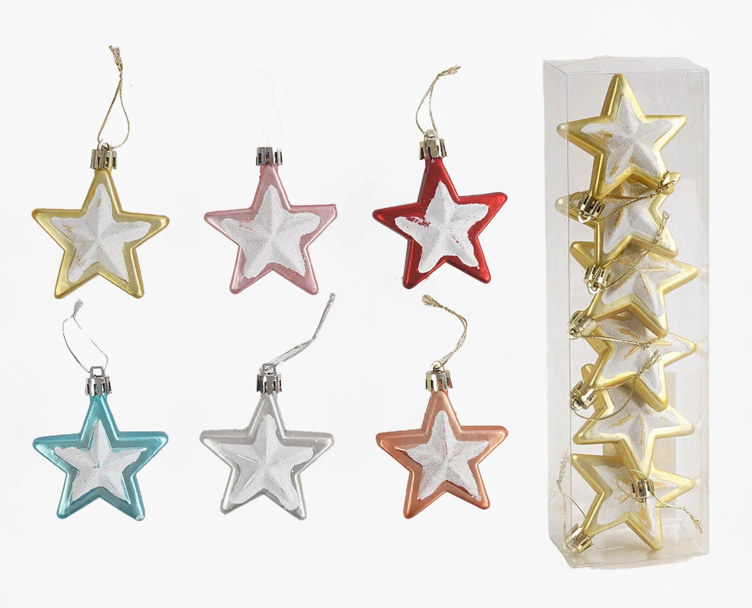 Новорічні прикраси .6 шт, 6 видів, зірочки, у слюді, ВИДАЄТЬСЯ МІКС ВИДІВ (C 67720)