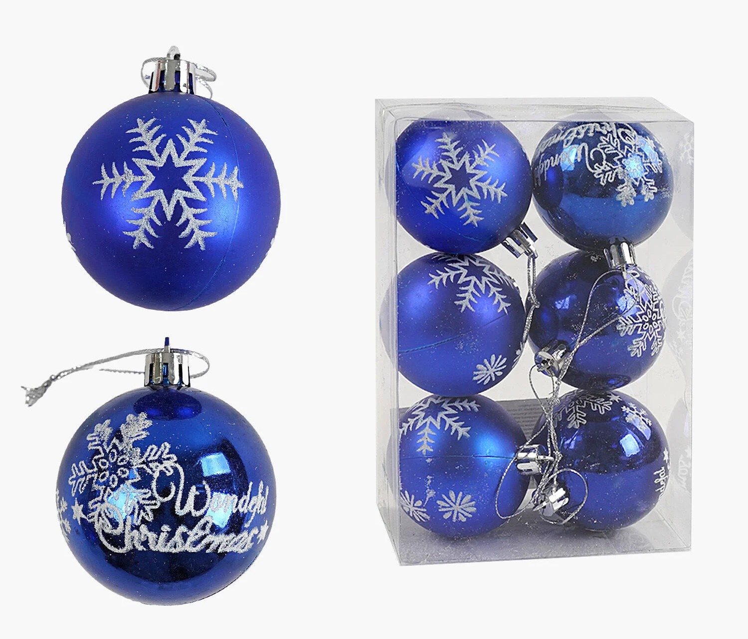 Новорічні прикраси .6 шт, кульки, D = 5,5 см, у слюді (C 67666)
