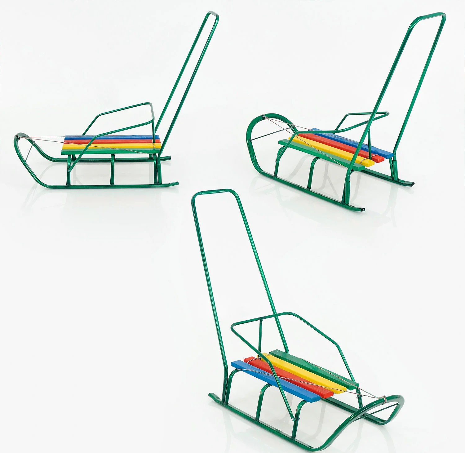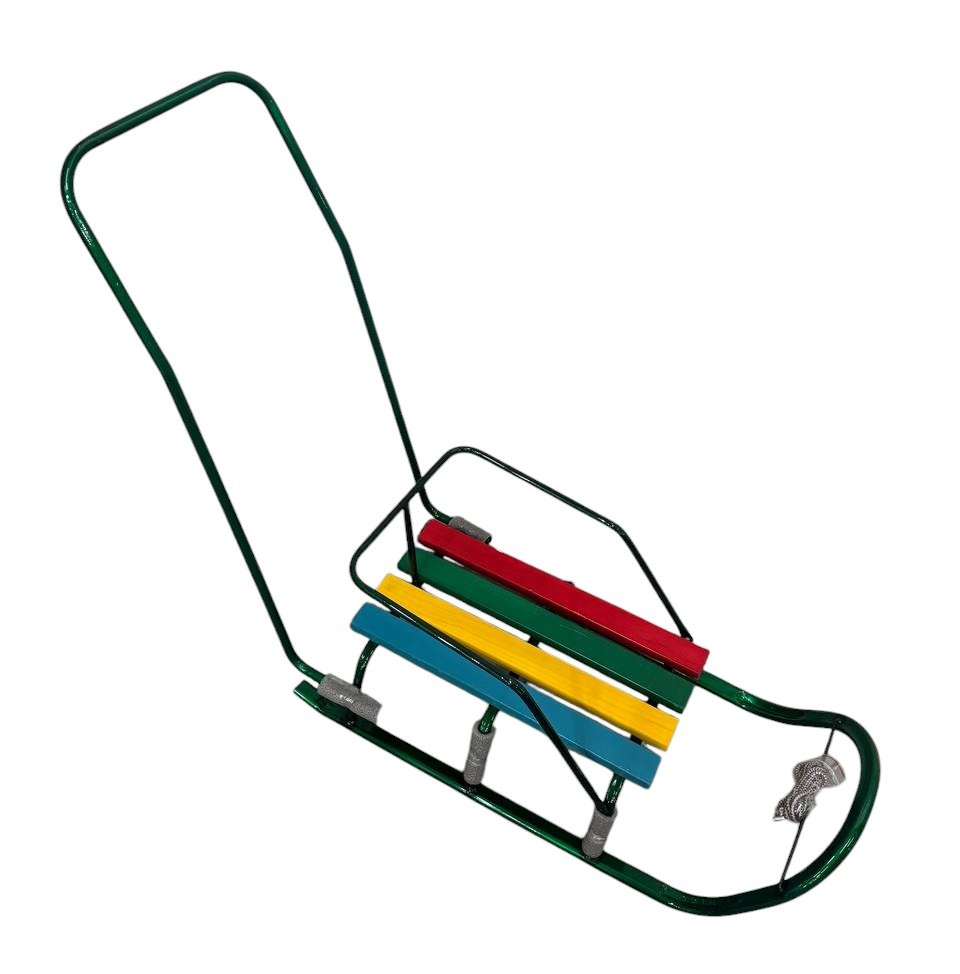 Сани з ручкою, плоскі полози, зелені